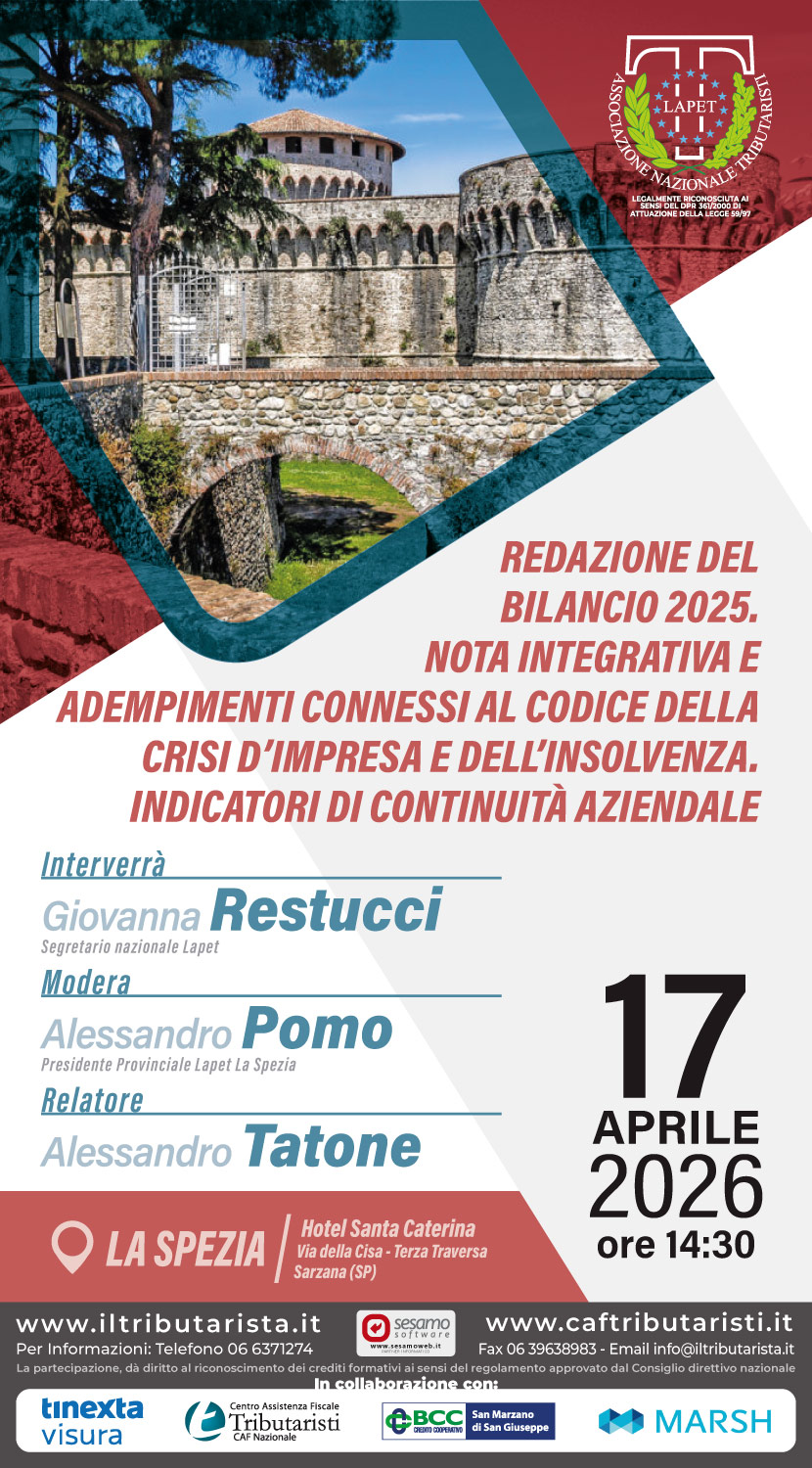 17 Aprile 2026 La Spezia (SP) - 17 Aprile 2026 Redazione del Bilancio 2025. Nota Integrativa e Adempimenti connessi al Codice della Crisi d'Impresa e...